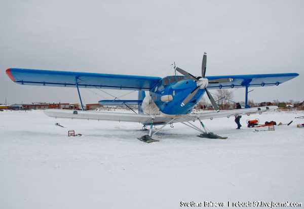 Кстати, на самолёте могут быть установлены лыжные шасси вместо колёс. И благодаря этому он может садиться и взлетать с неподготовленных площадок в зимний период.