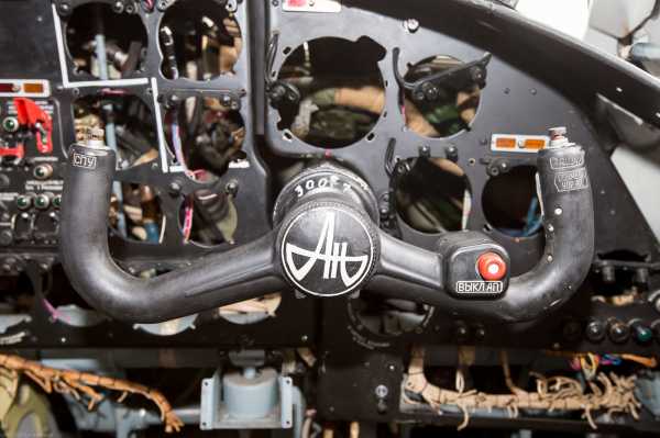 общий вид кабины с рабочего места второго пилота. Управление рулями и элеронами осуществляется посредством жестких тяг, управление триммерами руля высоты — тросовое.В систему управления рулями, элеронами и триммерами руля высоты включены рулевые машинки автопилота.