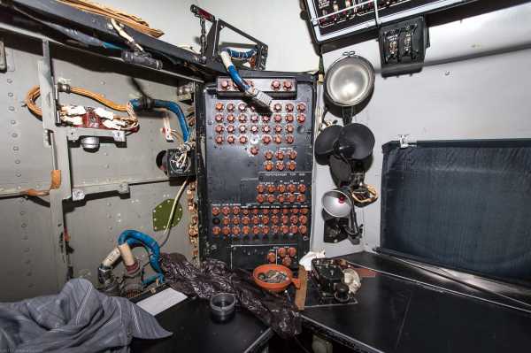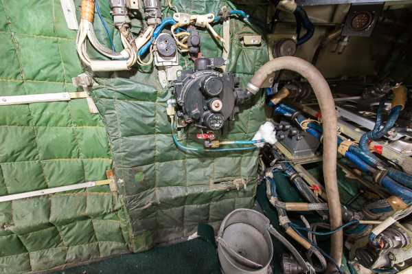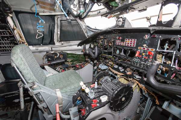 Но мы идем в кабину.Полностью изменен носовой отсек фюзеляжа до шпангоута 11. Передняя часть отсека удлинена на 0,73 м, и в ней оборудована кабина штурмана. Кабина летчиков поднята на 0,41 м и под её полом между правой стенкой ниши носовых колес и правым бортом оборудован проход в кабину штурмана. В кабине летчиков размещаются рабочие места летчиков, бортмеханика и бортрадиста.