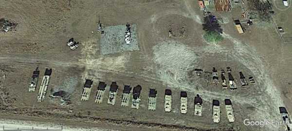 Спутниковый снимок Gооgle Еаrth: база хранения военной техники советского и российского производства на полигоне Эглин