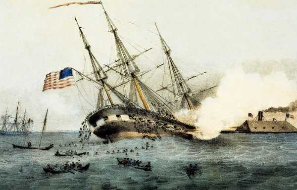 - Конфедеративные Штаты Америки также заложили бронированный корабль «Виргиния». Он был переоборудован из захваченного у США фрегата «Мерримак» с паровой установкой на борту. В мае 1862 года произошло столкновение между двумя противоборствующими американскими броненосцами – «Виргиния» и «Монитор». Не нанеся друг другу тяжелых увечий, судна разошлись. По стечению обстоятельств в этом же году броненосец Конфедератов пришлось затопить.