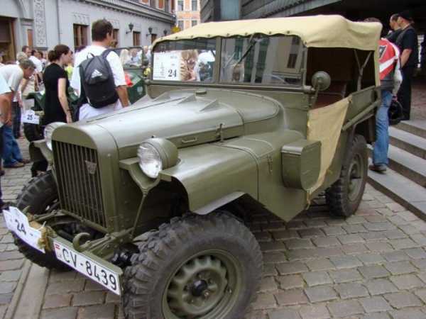 Volkswagen Typ 82. Германия. Производился с 1938 года, крупносерийно – с ноября 1940-го. Масса 0,7 тонны. Бензиновый двигатель объёмом 1,2 литра и мощностью 25 л.с. Максимальная скорость 60 км/ч. Всего до лета 1945 года было выпущено 50 436 машин flickriver.com Dodge WC, США. Производился с 1940 года. Масса 2,3 тонны. Бензиновый двигатель объёмом 3,8 л, мощностью 92 л.с. Максимальная скорость 92 км/ч. В различных (в том числе трёхосных) модификациях произведено около 255 000 машин. Поставлялись по договору ленд-лиза в СССРonlytruecars.com/ Willys MB, США. Серийное производство началось в 1941 году. Масса 1,1 тонны. Бензиновый двигатель объёмом 2,2 л, мощностью 60 л.с. Максимальная скорость 104 км/ч. С учётом копий Ford GPW выпущено 659 031 автомобилей, из них около 52 тысяч было поставлено в СССР по программе ленд-лиза