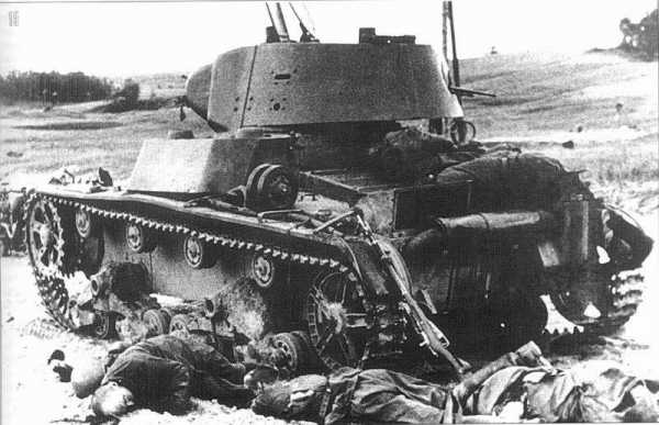 Немецкая подпись на обратной стороне фотографии :»Экипаж русского танка, который на своей горящей машине переехал немецкое противотанковое орудие вместе с расчётом. Днепр, сентябрь 1941