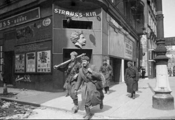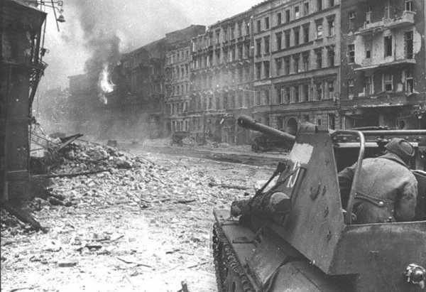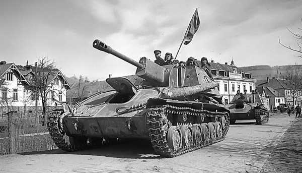Самоходки Су-76 на улицах Вены, апрель 1945 года