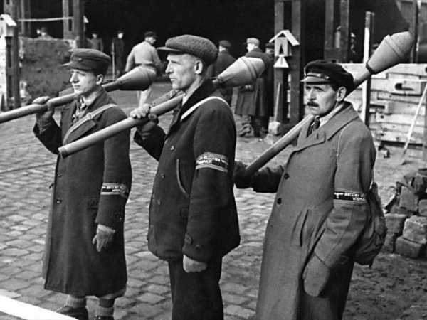 1945. Польша, колонна немецких военнопленных пересекает мост через Одер в направлении Украины