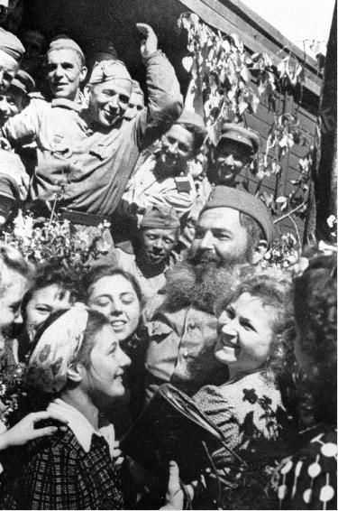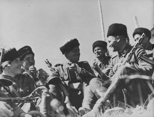 Празднование прорыва блокады Ленинграда 18 января 1943 года. На фотографии бойцы 327-й дивизии Волховского фронта и 123-й отдельной стрелковой бригады.