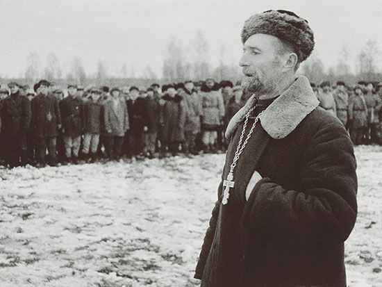 1943. Русские казаки в вермахте во время благословения (священники на переднем плане)
