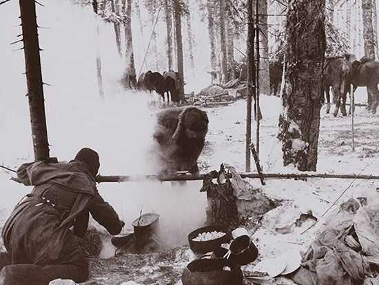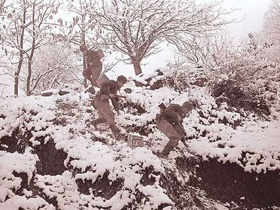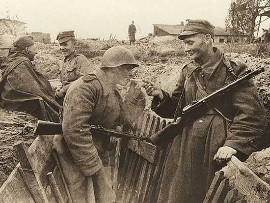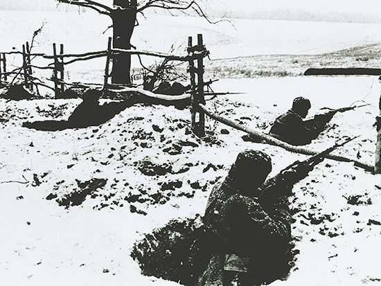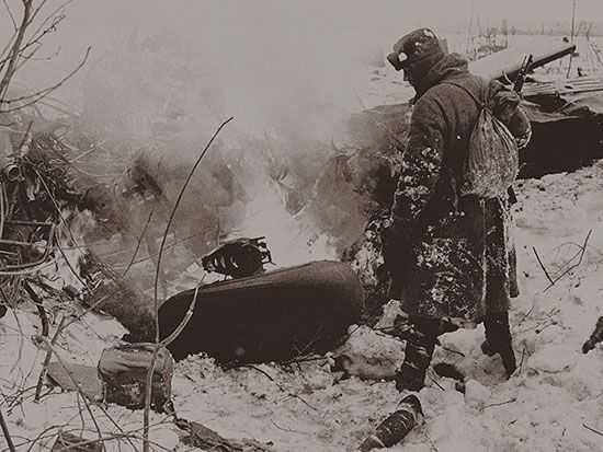 1941. Битва за Москву. Немецкие солдаты во время боя одетые по погоде