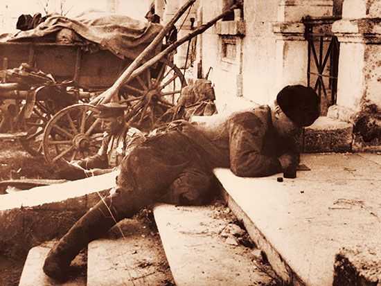 1942.Сталинград, немецкий солдат чистит K98 Mauser в перерыве между боями