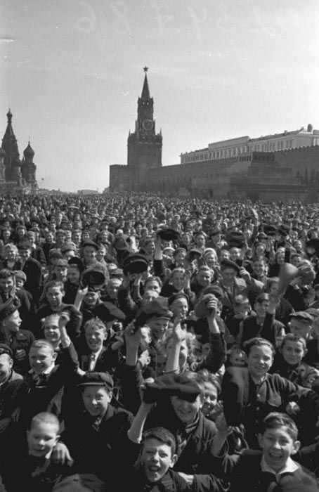 Символично, что за марширующими колоннами военнопленных шли поливальные машины и чистили мостовые.