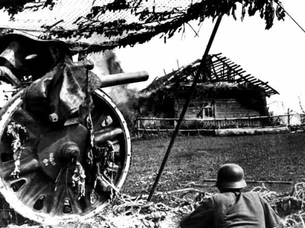 1941. Артиллеристы 2-ой батареи 833-го тяжелого артиллерийского батальона вермахта готовят к выстрелу 600-мм самоходную мортиру «Карл» (Karl Gerät 040 Nr.III «Odin») в районе Бреста.