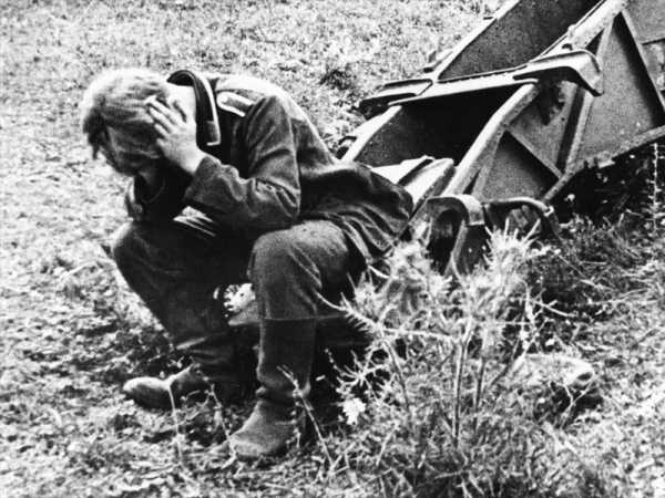 1941. Украина, советский военнопленный перед казнью по обвинению в том, что он агент ГПУ
