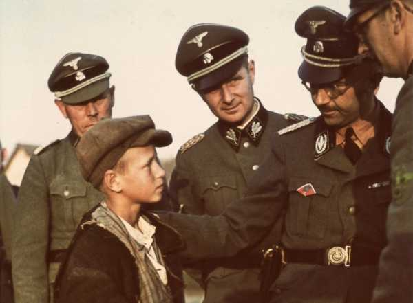 1943. Белгородская область, немецкие солдаты беседуют с женщинами и детьми