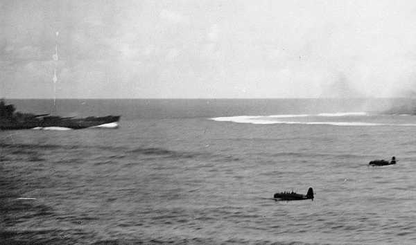 Снимок сделан 26 октября 1942 года во время боя у Санта-Крус, в ходе которого японцам удалось потопить один из двух американских авианосцев «Хорнэт». Съемка велась с борта линкора «Южная Дакота», зенитчики которой были, судя по всему и неплохими рыбаками — из насчитанных ими 26 сбитых японских самолетов, документально удалось подтвердить от силы 13 штук.