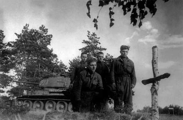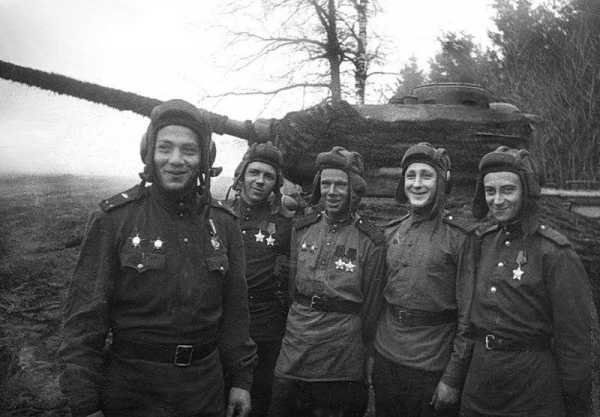 Посмотрите на этих парней — простые лица, они не рисуются, не красуются на камеру. Скорее ждут, чтоб съемка побыстрее закончилась и можно было вновь приступать к своим обязанностям. Всего через две недели их не станет — их головной КВ, и ещё три другие боевые машины, идя по ошибочным разведданным выйдут прямо на замаскированную в лесу артиллерийскую батарею. Обычные снаряды противотанковых немецких пушек того периода не могли пробить броню КВ-1, однако в этот раз, артрасчеты располагали термитными снарядами. Экипажи всех 4-х машин сгорели вместе с танками.