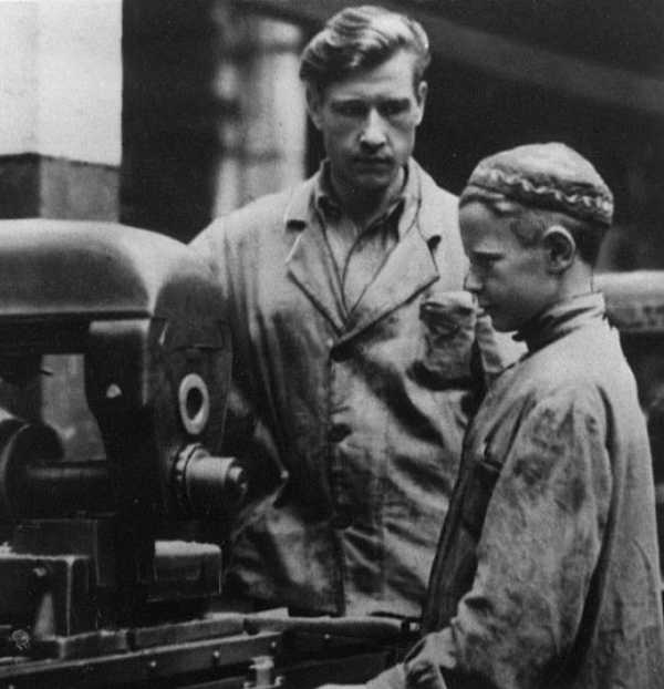 На заводе Орджоникидзе дети заменяют взрослых у станков. Москва, 1942-й год.