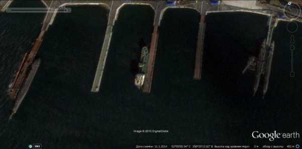Спутниковый снимок Google Earth: боевые корабли СФ на стоянке в Североморске