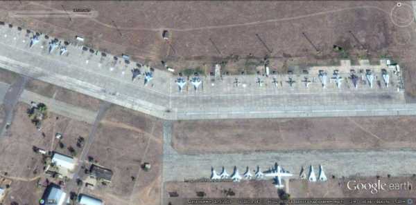 Спутниковый снимок Google Earth: истребители Су-30СМ на аэродроме Саки в Крыму