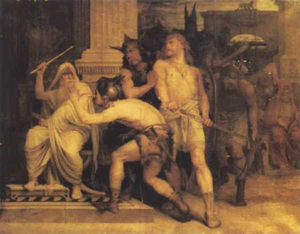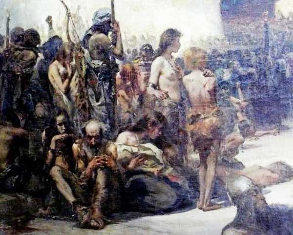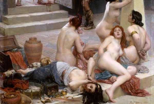Патриотическая римская легенда живописно рассказывает о том, как встретили смерть оставшиеся в нижнем городе сенаторы Самые знатные из них, одевшись в парадное платье, сидели на креслах из слоновой кости в вестибюлях своих домов. Сначала галлы с изумлением смотрели на неподвижные фигуры, принимая их за статуи. Один из варваров рискнул потрогать одного из стариков за длинную бороду. Тот ударил его жезлом, что и послужило сигналом к всеобщему избиению.