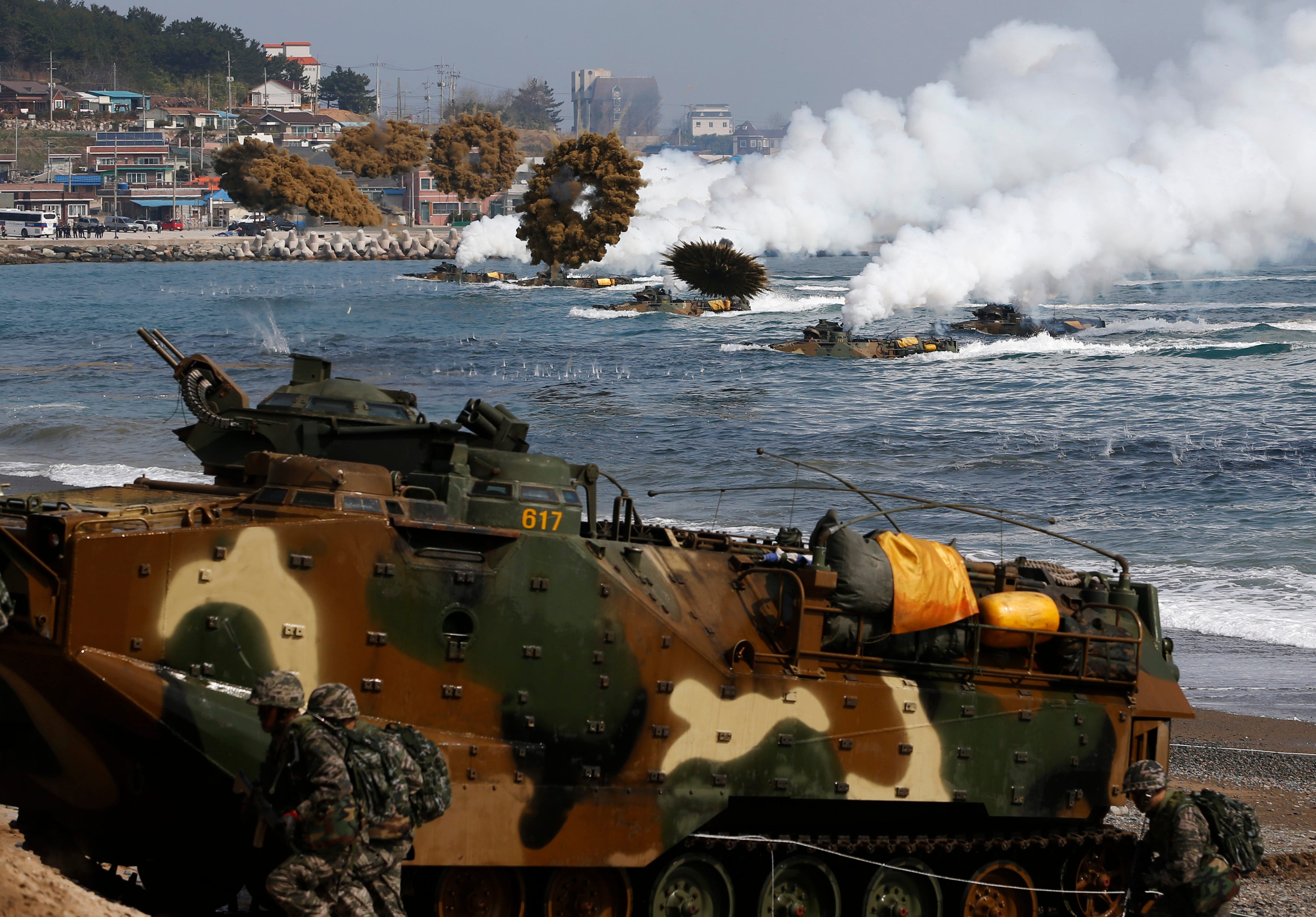 После эвакуации техники и вывода войск ООН инфраструктуру порта в Северной Корее взорвали. Приземление десанта военнослужащих ООН в 1951 году.После ухода ООН из Северной Кореи новые подразделения организации были развернуты на юге, что способствовало новому перелому в ходе сражений.