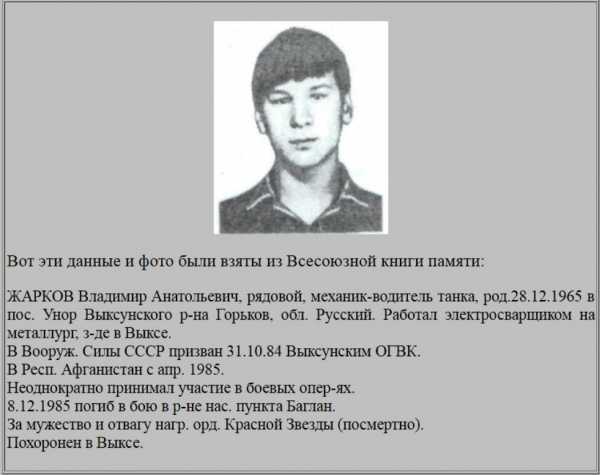 Жарков Владимир Анатольевич (28.12.1965 — 08.12.1985)