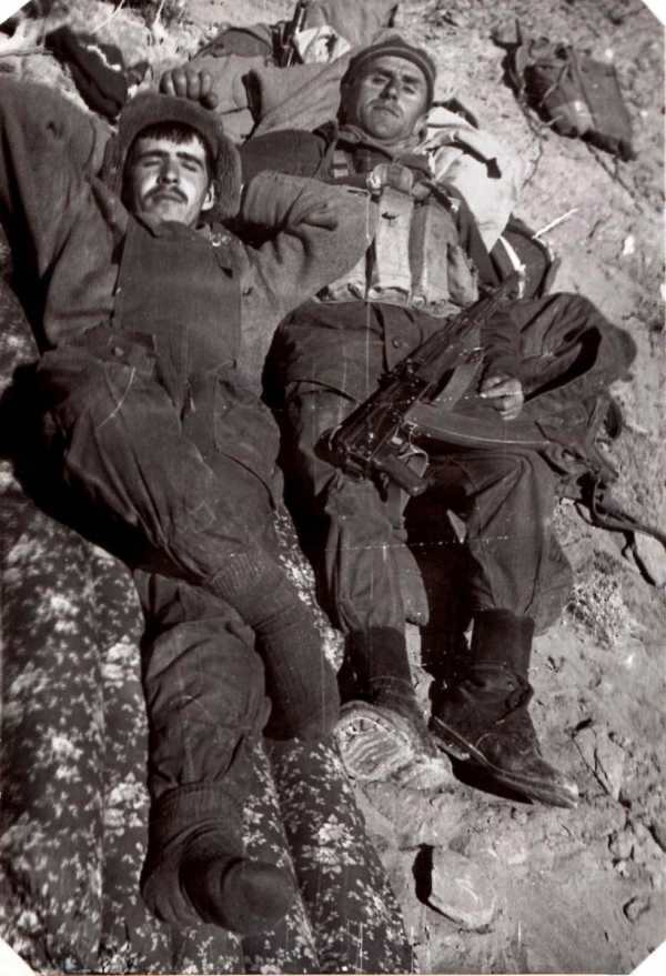 Сафар и старшина 2 роты Емельяныч принимают солнечные ванны на дневке — Вторые Броды 13.02.1987