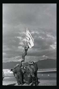 ![]() Водружение самодельного флага Израиля в Эйлате, ознаменовавшее окончание войны | |||