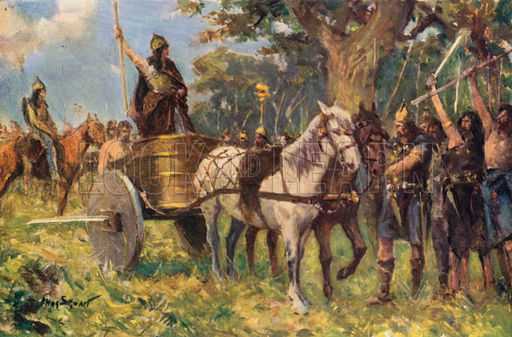 Тацит пишет, что Боудикка управляла своими войсками с колесницы, обратившись перед битвой к своим людям с речью, в которой просила считать себя не благородной королевой, которая мстит за потерянное королевство, а обычной женщиной, мстящей за отнятую свободу, за свое избитое плетьми тело, за поруганное целомудрие дочерей. Боги были на их стороне, один легион, решившийся противостоять им, они уже разбили, разобьют и другие. Она, женщина, скорее готова была умереть, чем жить рабыней, и к тому же призывала своих людей.
