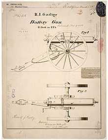 Запатентована доктором Ричардом Джорданом Гатлингом в 1862 году под названием Revolving Battery Gun. Предшественницей орудия Гатлинга является митральеза[1].