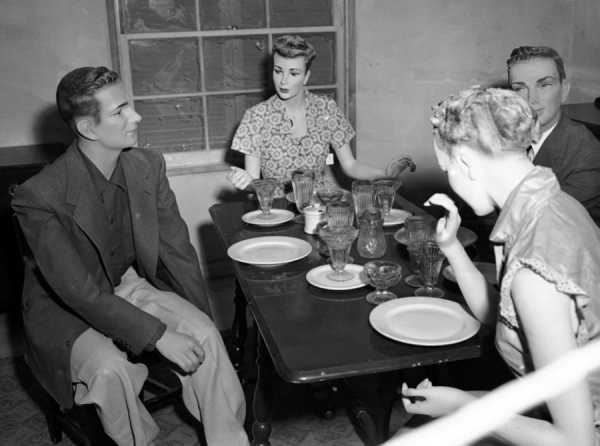 8. До взрыва. Во время испытания Upshot-Knothole в дом за обеденный стол были помещены манекены, чтобы смоделировать ситуацию, 15 марта 1953 года. (Фото Dick Strobel | AP):
