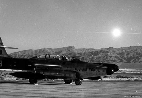 23. Вспышка взорвавшейся ядерной боеголовки ракеты класса воздух-воздух в 7:30 утра 19 июля 1957 года на авиабазе «Indian Springs», в 48 км от места взрыва. На переднем плане – однотипный летательный аппарат «Скорпион». (National Nuclear Security Administration / Nevada Site Office)