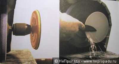 - Если во время затачивания на бруске появляется металлическая пыль, ее необходимо смыть водой.
