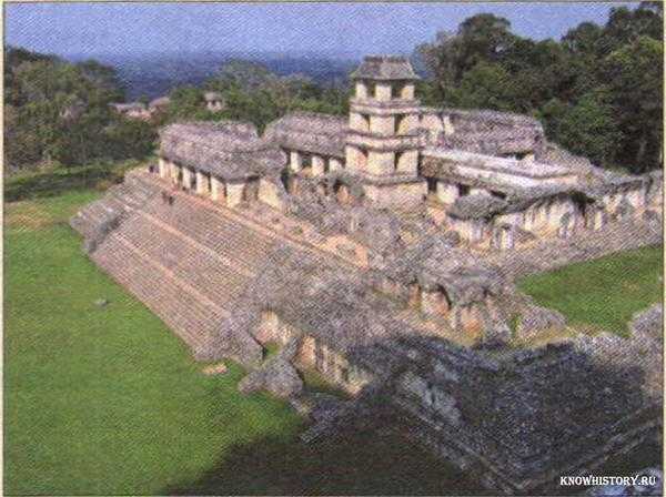 Руины Большого дворца в Паленке. Культура майя. Мексика
