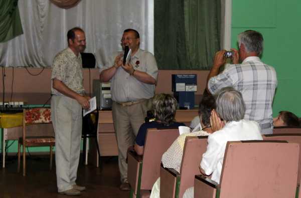 Презентация проходила в здании местного Дома культуры сразу после завершения церемонии открытия памятного обелиска, фото 6 августа 2015г.:
