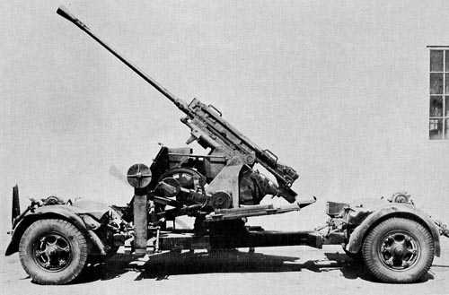 - 20-мм FlaK-38 — буксируемое зенитное орудие с увеличенным темпом стрельбы, на колёсном лафете, для сухопутных войск («Маузер»), в войсках с 1940 г.