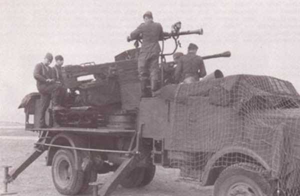 Основным войсковым средством ПВО в военное время у немцев являлись 20-мм зенитные автоматы 2,0 cm FlaK 30 и 2,0 см Flak 38, отличающиеся друг от друга некоторыми деталями. Как следует их обозначения 2,0 cm FlaK 30 (нем. 2,0 cm Flugzeugabwehrkanone 30 — 20-мм зенитная пушка образца 1930 года) была разработана фирмой Rheinmetall в 1930 году и официально поступила на вооружение в 1934 году. Помимо Германии эти 20-мм зенитки официально состояли на вооружении в Болгарии, Голландии, Литве, Китае и Финляндии. Достоинствами зенитного автомата Flak 30 являлись: простота конструкции, возможность быстрой разборки и сборки, и сравнительно малый вес.