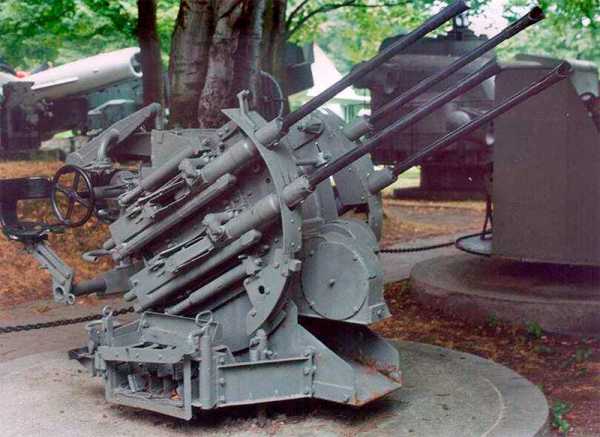 Счетверенная зенитная установка из пушек 20-мм FlaK 30/38, установленная на тумбе