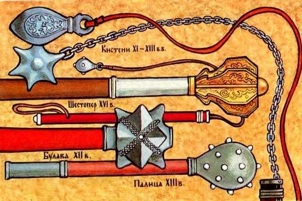 С XIV века на Руси распространяется шестопер (он же пернач) — булава с шестью выпиленными лопастями, расположенными примерно так же как оперение у стрелы. Как и прочее оружие, булава украшалась замысловатым рисунком: между шипами, древние мастера создавали затейливую вязь. Шестоперы были занесены на нашу территорию Монголо-Татарами.