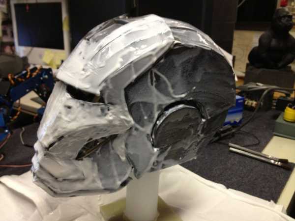 Детали шлема склеивал горячим клеем, а затем весь шлем покрыл двух компонентным составом для литья. Чтобы добиться желаемой гладкости пришлось покрывать шлем 10 слоями жидкого пластика, но это того стоило.