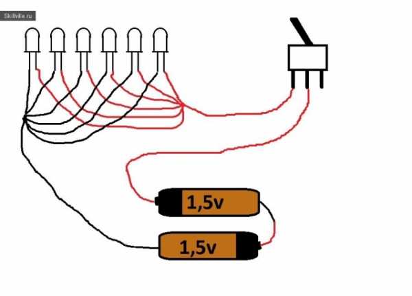 Глаза я сделал на основе LED огней, переключателя, проводов и батареек. На самом деле можно разобрать подходящий фонарик и достать оттуда все необходимое. На место глаз я вставил прозрачный пластик (вырезал из пластиковой бутылки).