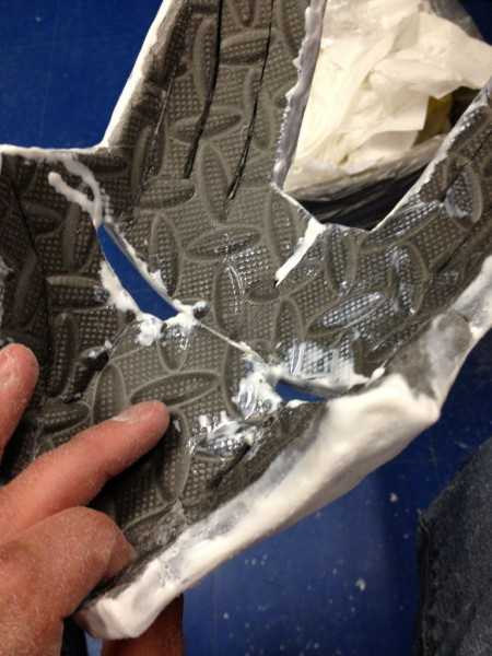 Третий слой: 3 слой – финальный слой. Вы должны убрать все недостатки и получить почти идеальную деталь костюма. Затем, обработайте 150-ой наждачной бумагой, и уберите пыль влажной тряпкой.