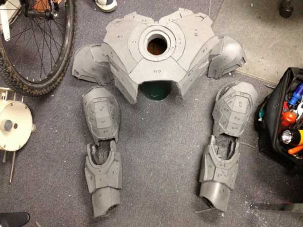 и собрал его. Для придания костюму прочности и формы, изнутри укрепил пенистые детали толстой проволокой.