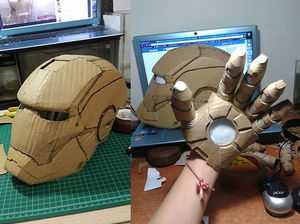 А также много вопросов возникает по поводу того, как сделать шлем железного человека. Из бумаги делается модель, после все детали можно слепить из штукатурки. А вот с сиянием глаз возникают проблемы. Для этого используют светодиоды и слабопрозрачный белый пластик от бутылок. Но подсветка может сильно светить в глаза, а потому лучше не использовать её долго.