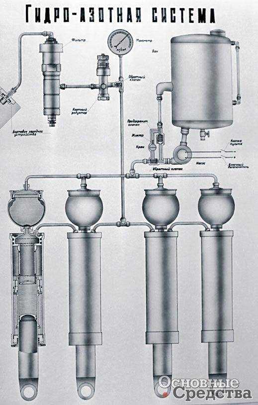 Схема гидропневматической системы машины. Рисунок Os1.ru