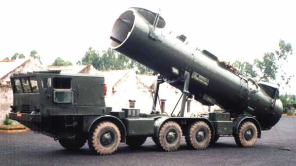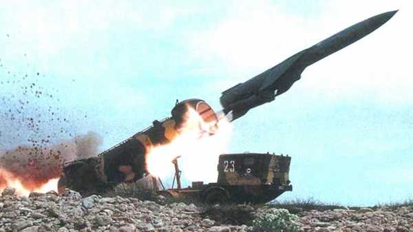 Перегрузка ракеты 9М21 с ТЗМ 9Т29 на пусковую установку (из архива автора)