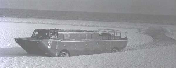 Из стеклопластика изготовили палубу, кабину экипажа, топливные баки и грузопассажирский отсек. Кабину ( рубку) разместили в носовой части, моторное отделение — в кормовой, а грузопассажирский отсек — между ними. Так впервые в мировом автостроении несущий корпус многоосной амфибии полностью изготовили из композиционных материалов.