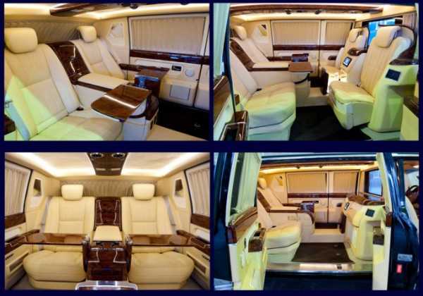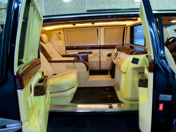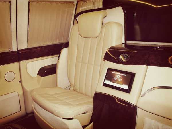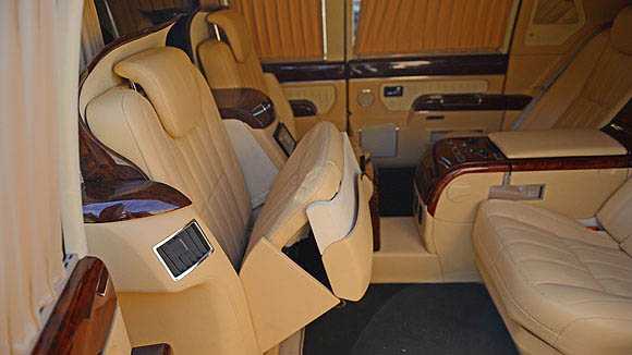 В пассажирском салоне откидные столики, два дополнительных кресла с электроприводом, бар и огромный отсек между сиденьями, чье место могло бы занять любое оборудование, необходимое сильным мира сего.