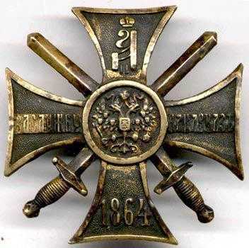 На верхней части креста изображался вензель отечественного императора Александра II, а внизу дата — 1864. Это год, в который были окончательно завершены боевые действия на Северном Кавказе.