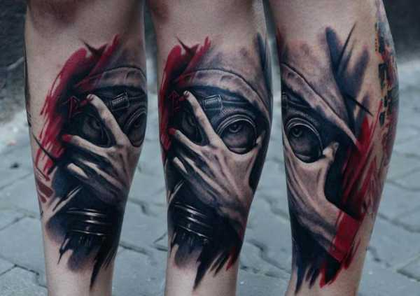 Нередко противогазы изображают в контексте войны или зомби апокалипсиса. И это одни из самых эффектных применений татуировки.