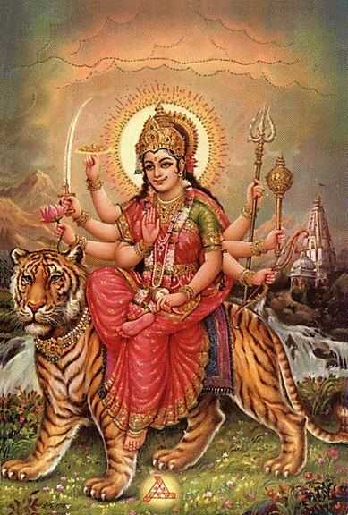 Фигура бога на этом рисунке не мужественная, а женоподобная. В его многочисленных руках — изогнутый меч, лук, символы власти трезубец и булава. Вместо змей в руке у него цветок, а в другой руке какое-то божественное кушанье. Это — явно не бог войны, не пассионарий. На заднем плане — храм с луковицеобразной главой. Фото с сайта: http://kaktoutrom.livejournal.com/206891.html |